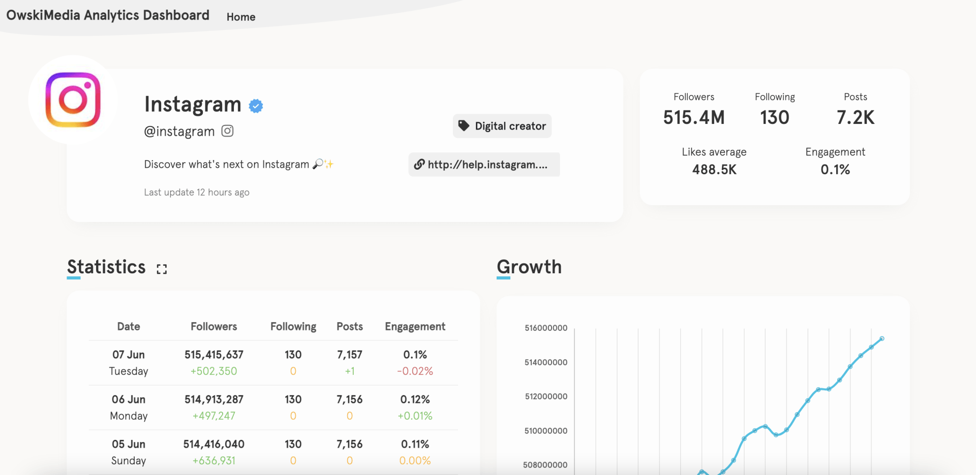Analytics DashboardYou'll have access to our analytics dashboard which provides daily updates on your Instagram account's key performance metrics, including follower and following counts and engagement rate. We will also email you a monthly growth report detailing the performance of your account. This way, you can track the effectiveness of our service and make informed decisions about switching to a different plan.